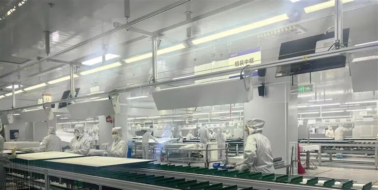 在生產線方面,項目采用模組整機一體線和測試雙線設計,在減少線體和無塵室建設成本的同時,還能兼容多尺寸產品生產,實現產能最大化。在自動化領域,項目一層布局13條高效線體,近60%工序實現智能化運作,效率與精度顯著提升,成為智能制造的行業典范。此外,周邊注塑、模切、五金等產業鏈配套齊全,形成了高度垂直整合的生態閉環,賦能智能制造,引領行業新標桿。
