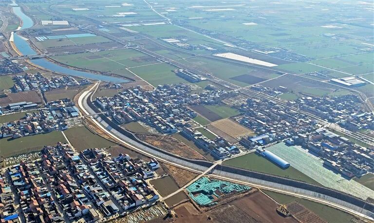 航拍下的國家重點工程西霞院水利樞紐輸水及灌區工程孟州市片區城區段。該工程歷經五年多建設,已全線完工并于2025年12月順利通過驗收,進入運行管理新階段。白水平 攝